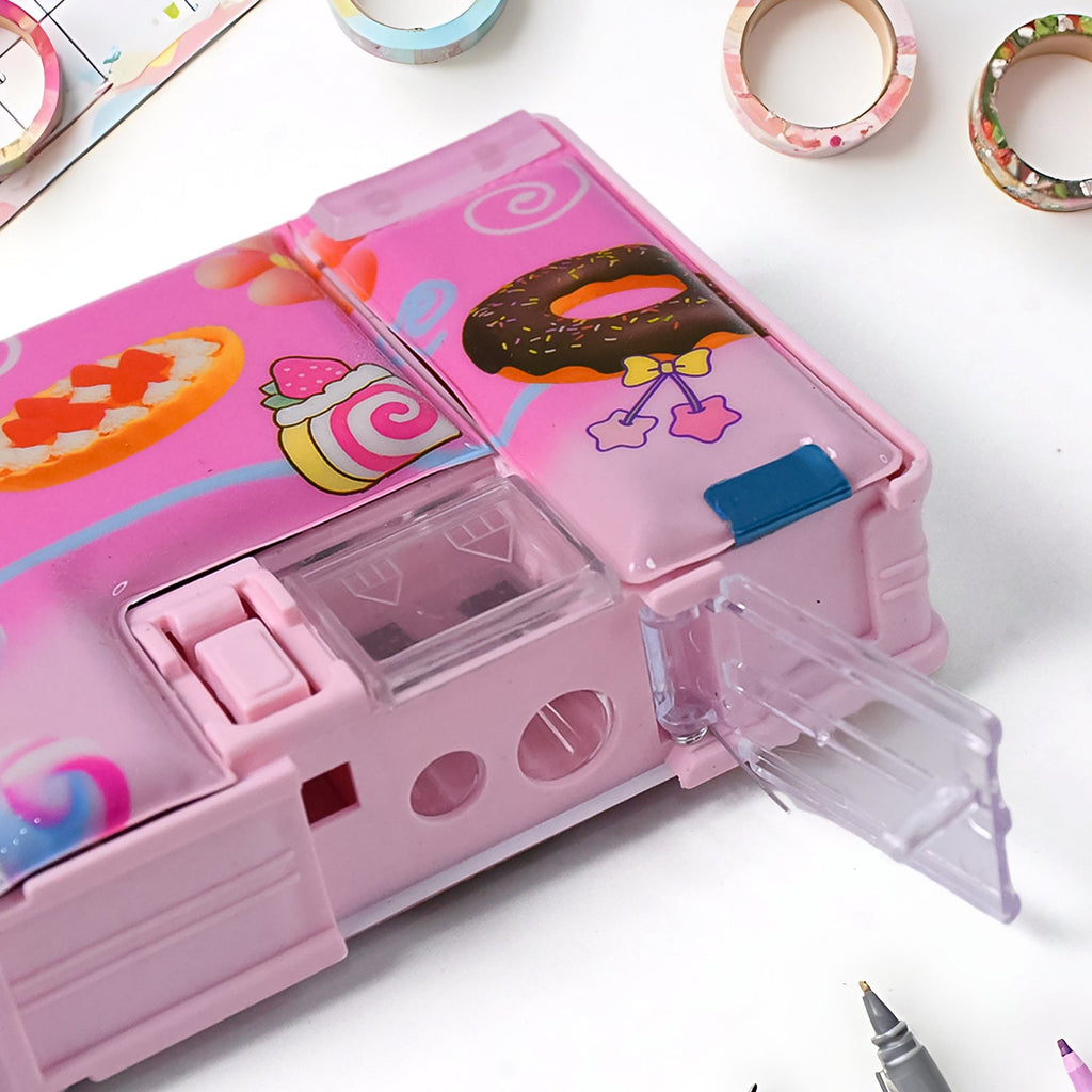 • Compass Box: This carton printed pencil case comes with 2 Compartments.
